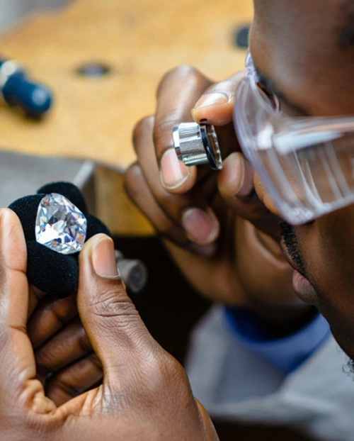 Hand cutting is the haute couture of diamond crafting. A skilled diamantaire works with cutting wheels, loupes, saws and hand-held faceting arms, making every decision in real time, guided by experience and instinct built over years at the wheel. Each gem is treated as a singular project, assessed and shaped entirely on its own terms.
