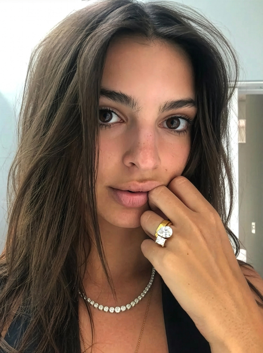 Emily Ratajkowski’s princess-cut engagement ring was anything but traditional, a toi et moi design paired with a pear-shaped diamond. After her split, she had the original ring, which comprised a princess-cut and a pear-cut diamond, reset into two ‘divorce rings’ by ring designer Alison Chemla of Alison Lou, one featuring the original princess cut flanked by trapezoid side stones in a bold trilogy setting, and the other featuring the pear-cut diamond. It’s a striking example of how the princess cut can move between romance and reinvention, all via a strong setting choice.