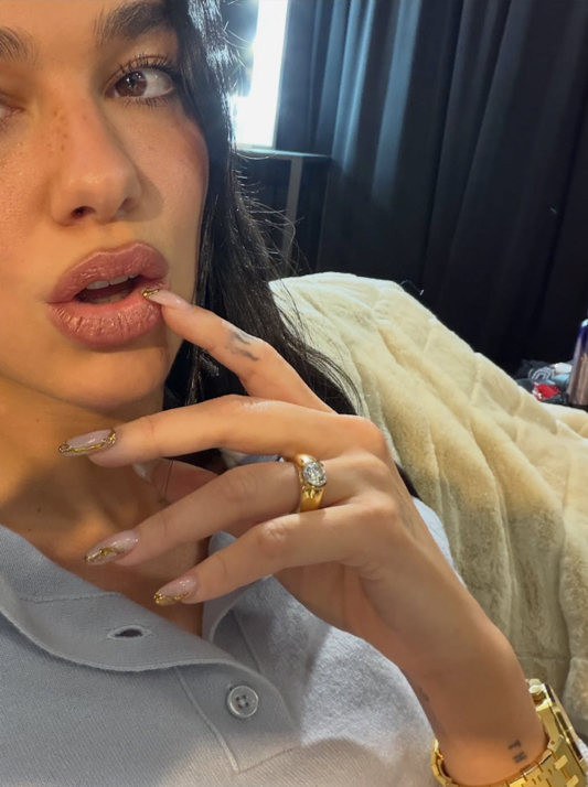 You see that quiet confidence in singer Dua Lipa’s round brilliant cut diamond engagement ring set into a wide yellow-gold band, which adds a modern elegance to the timeless diamond cut.