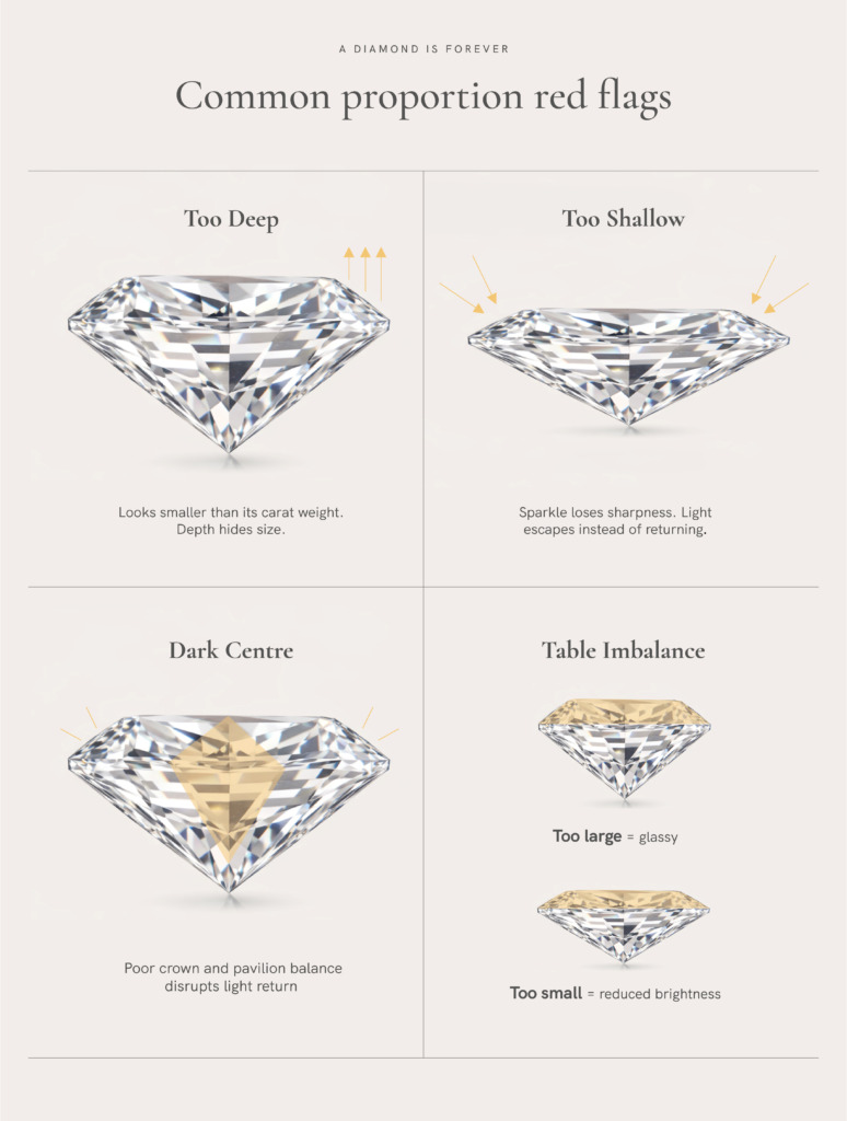 Consider this your quick-scan list. Most round brilliants are cut to impress, but if something feels slightly off when you look at it, these are the usual suspects.