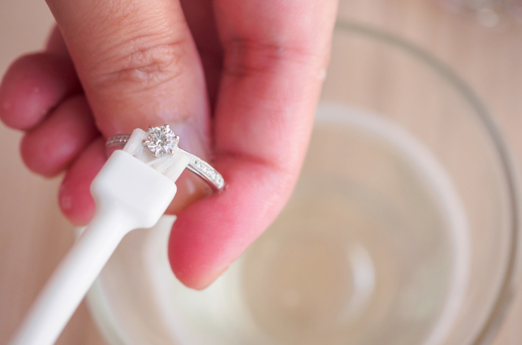 A consistent cleaning routine keeps residue from building up and dulling the diamond or damaging the setting.