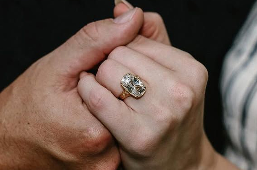 \When Taylor Swift announced her engagement to Travis Kelce, attention quickly shifted to her diamond ring, designed by Kindred Lubeck of Artifex Fine Jewelry. The Old Mine cut center stone set in 18k yellow gold placed it firmly among the year’s most talked-about diamond jewelry engagement rings.